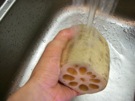 れんこんを 水から 出します。