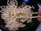 れんこんを 入れて、1〜2分 炒めます。