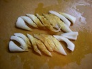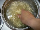 にんじんは 皮を むいて、2mmに 細く 切ります。
