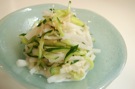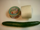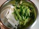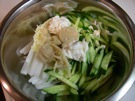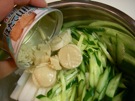 材料の ほたて貝柱の 缶詰、大根、きゅうりです。