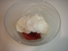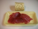 わさびを のせます。しょうゆを 少し かけて 食べます。