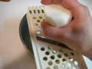 すりおろします。 ※後で かゆくなるので、手を よく 洗ってください。