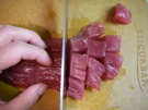 まぐろを 1.5cm×1.5cmに 切ります。