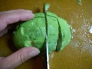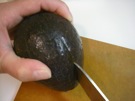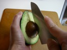 アボカドに たてに 切れめを 入れます。
