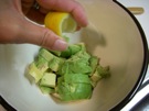 ボウルに 入れて、すぐに レモンを しぼって かけます。
