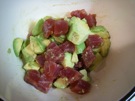 材料の アボカド、レモン、まぐろの 刺身です。