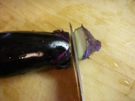 なすの へたと がくを 取ります。