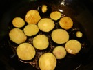 フライパンに 油を 2cm 入れて、火に かけます。