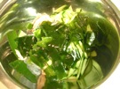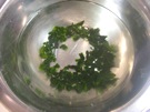 わかめを 水に つけて、やわらくします。