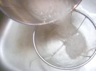 ざるに 入れます。