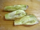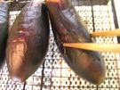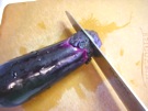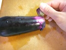 なすを 回しながら、皮が 黒くなるまで 焼きます。