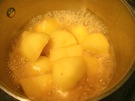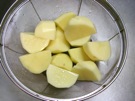 じゃがいもの 皮を むいて、4つに 切ります。