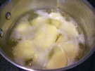 鍋に じゃがいもと 水を 入れます。