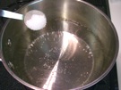 鍋に 水を 入れて、中火に かけます。沸いたら、塩(小さじ1/2くらい)を 入れます。