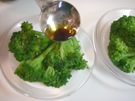 ブロッコリーを 皿に 入れて、10を 少し かけます。