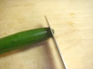きゅうりの へたを 切ります。