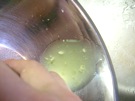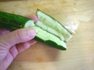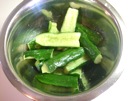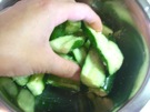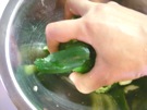きゅうりを 手で しぼります。
