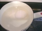 卵と 水を 鍋に 入れて、中火に かけます。15分 茹でます。