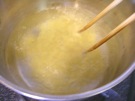 時間(6で 確認した 時間)になったら、ざるに あげます。