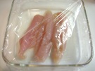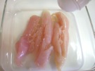 ささみを 耐熱皿に 並べて、塩を ふります。