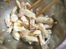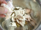ささみが 冷めたら、手で 小さくします。 13に 入れます。