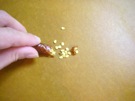 とうがらしの へたを とって、種を 出します。