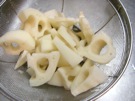 れんこんと 赤とうがらしを 入れて、混ぜます。1時間以上 冷蔵庫で 冷やします。(できれば 1日くらい おきます)