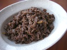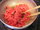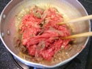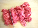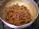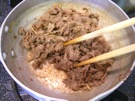 箸で 肉と 肉を 離しながら 煮ます。火は 弱めの 中火です。