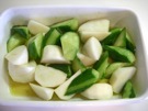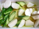 かぶと きゅうりに 塩(小さじ1/2)をふって、10分 おきます。