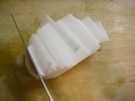そのあと、たてに 2mmに 細く 切ります。