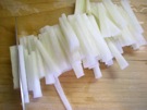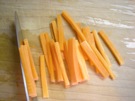 そのあと たてに 3mmに、 細く 切ります。