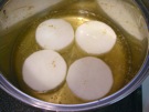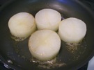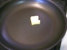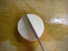 バターが 溶けたら、大根を 入れます。4で 入れた 切りこみを 上にして 入れます。