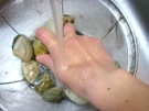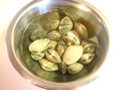 あさりの 殻を こすりながら、よく 洗います。