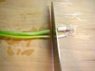小ねぎの 根を 切ります。