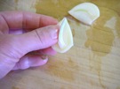 にんにくを たてに 半分に 切ります。芯を 取ります。