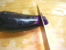 なすの へたを 切ります。