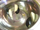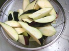 なすを 全部 切って、水に 入れます。
