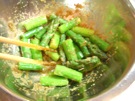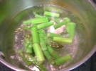 沸いたら アスパラガスを 入れて、1分30秒 茹でます。