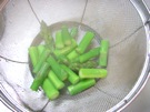 ざるに 入れて、水を 捨てます。