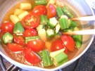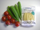 材料の ミニトマト、オクラ、ヤングコーンです。