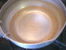 鍋に 水 250mlを 入れて、中火に かけます。沸く前に 火を 止めます。
