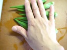 オクラの へたを 切ります。