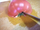トマトの へたを 取ります。