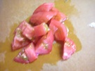 材料の トマトと もずく酢です。