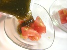 もずく酢を かけます。