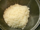 米は 洗って、ざるに 入れます。