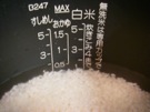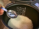 炊飯器に 米と 酒を 入れます。