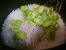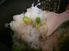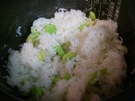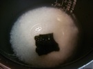 炊飯器に 洗った米と 酒を 入れます。2の 目盛りまで 水を 入れます。