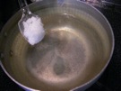鍋に 湯を 沸かして、塩を 入れます。(小さじ1/2くらい)
