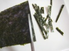 皿に そばを 入れて、のりを かけます。
